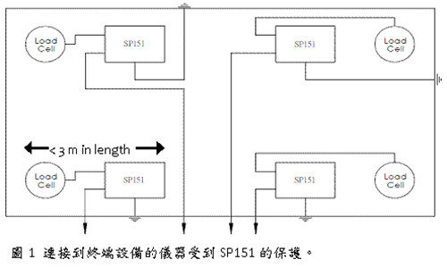 SP151開發(fā)為保護秤重儀器/測量設(shè)備以避免可能出現(xiàn)因雷擊或意料外的電氣干擾(如激發(fā)電壓,信號狀況的脈沖電流)所造成的故障,減少上述原因可能造成的損失。