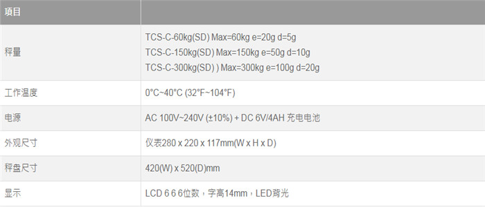 功能說(shuō)明鋁壓鑄秤臺(tái):強(qiáng)度和表面硬度高,耐腐蝕, 穩(wěn)定性好,堅(jiān)固實(shí)用, 壽命長(zhǎng)采用高精度之鋁質(zhì)傳感器傳感器具有設(shè)計(jì)良好之重量保護(hù)點(diǎn)功能(四角過(guò)載保護(hù),運(yùn)輸保護(hù))采用高速24bits外部顯示精度高達(dá)1/15,000。(1) 從加載起到達(dá)穩(wěn)定所需時(shí)間短(2) 從負(fù)載移除起到達(dá)零點(diǎn)之速度快,無(wú)殘留(3) 零點(diǎn)、扣重鍵啟動(dòng)之反應(yīng)速度快抗干擾能力(EMS+EMI):抗幅射、靜電、電源輸入干擾效能優(yōu)于舊有機(jī)種。具有LED背光之功能。具有累計(jì)次數(shù)及數(shù)量、定量警示之功能。具有自動(dòng)更正、雙重超載保護(hù)之功能。具有自動(dòng)平均單重、全扣重、預(yù)扣重之功能。可設(shè)定數(shù)量取樣穩(wěn)定范圍設(shè)定。自動(dòng)零點(diǎn)追蹤功能。具有10組PWLU (preset unit weight preset tare look up)記憶功能。內(nèi)藏蓄電池,具有低電量顯示、自動(dòng)關(guān)機(jī)功能。按鍵采有觸感之設(shè)計(jì),采用3M之膠貼防水性高。LCD可顯示至全扣重(重量欄: 6位、單重欄: 6位、數(shù)量欄: 6位)。采用可接AC 100~240V頻率 50/60 Hz (插電式),不用擔(dān)心插座電壓不對(duì)。開(kāi)關(guān)電源符合 DOE 節(jié)能法規(guī) Level 6標(biāo)準(zhǔn),高效率低耗能更省電。直流:DC 6 V / 4 Ah 充電電池(充電式)。儀表外殼采用ABS塑鋼材質(zhì),使用壽命長(zhǎng)。規(guī)格說(shuō)明
