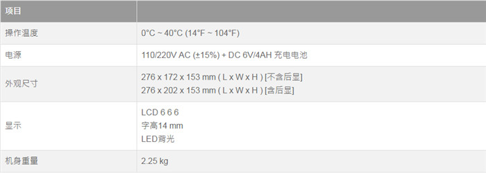內(nèi)藏蓄電池,具有低電量顯示、自動關(guān)機功能。