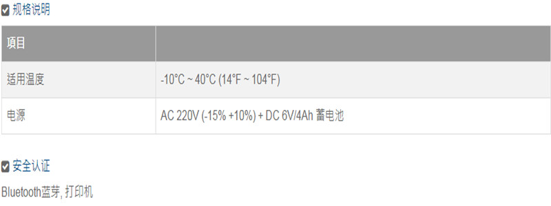 自動校正功能、自動零點追蹤、低電力及充電狀態(tài)顯示。